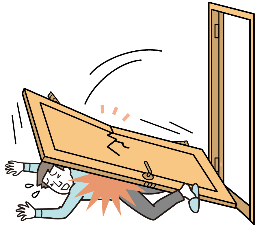 工事で設置したドアの取付が不完全でドアが外れ、住人にケガをさせてしまった。ドア自体も損壊したため、回収・交換を行った。