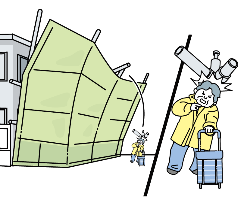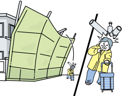 工事中に足場が倒れ、通行人に重傷を負わせてしまった。