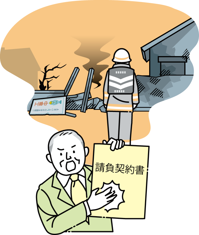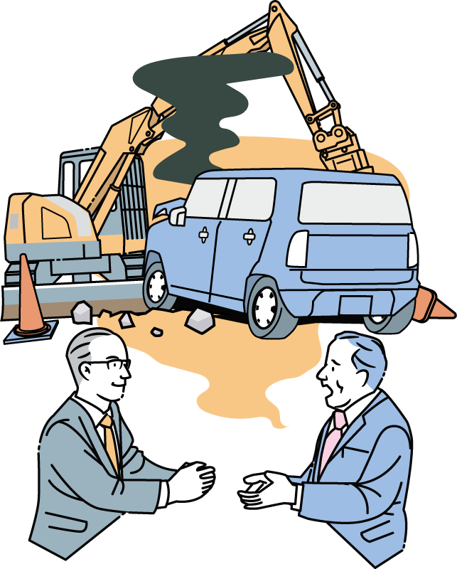 保険金をお⽀払いする事故が発生した際、損害賠償責任の範囲等に関する相⼿⽅との交渉は、⽇新⽕災が代わりにお引き受けします。